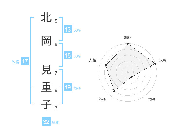 北岡 見重子さんを姓名の画数から五運を鑑定