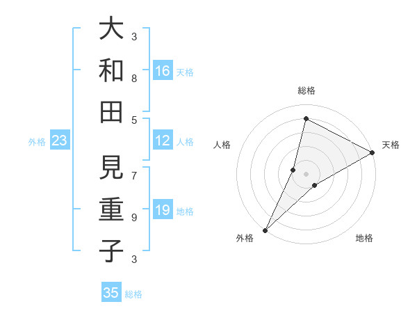 大和田 見重子さんを姓名の画数から五運を鑑定