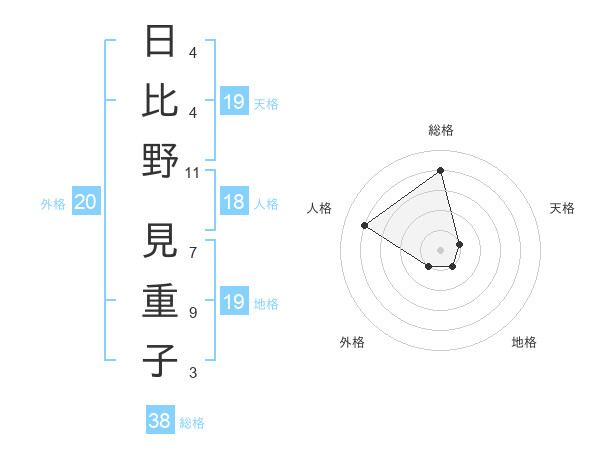 日比野 見重子さんの総格は38画の4点