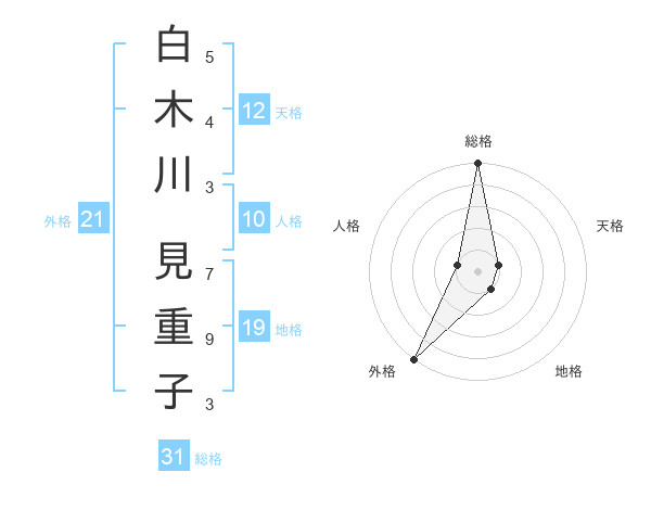 白木川 見重子さんを姓名の画数から五運を鑑定
