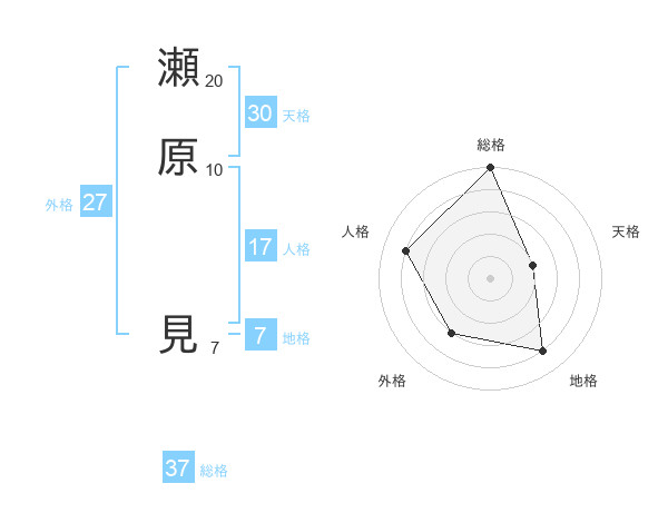 瀬原 見さんの総格は37画の5点!
