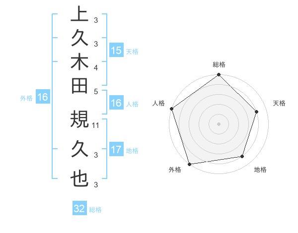 上久木田 規久也さんの外格は16画の5点
