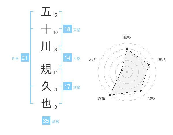 五十川 規久也さんを姓名の画数から五運を鑑定