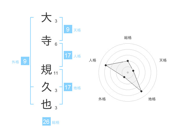 大寺 規久也さんを姓名の画数から五運を鑑定