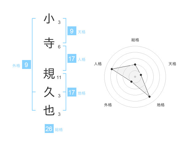 小寺 規久也さんを姓名の画数から五運を鑑定