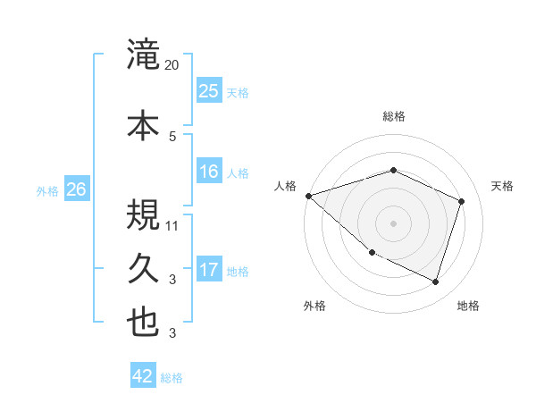 滝本 規久也さんを姓名の画数から五運を鑑定