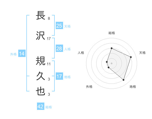 長沢 規久也さんを姓名の画数から五運を鑑定