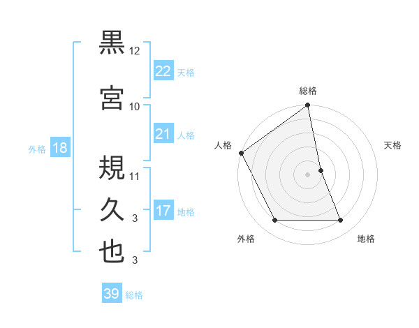 黒宮 規久也さんを姓名の画数から五運を鑑定