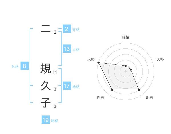 二 規久子さんの総格は19画の1点!