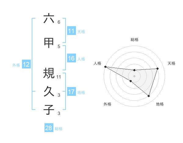 六甲 規久子さんを姓名の画数から五運を鑑定