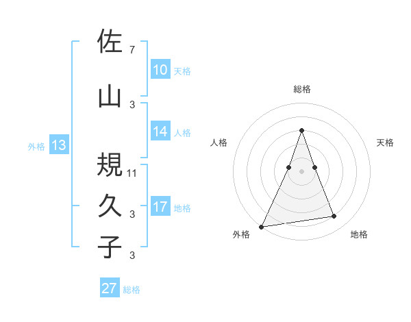 佐山 規久子さんを姓名の画数から五運を鑑定