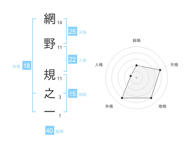 網野 規之一さんの総格は40画の2点
