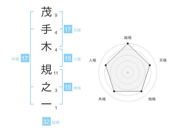茂手木 規之一さんを姓名の画数から五運を鑑定