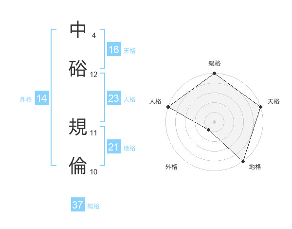 中硲 規倫さんの総格は37画の5点!