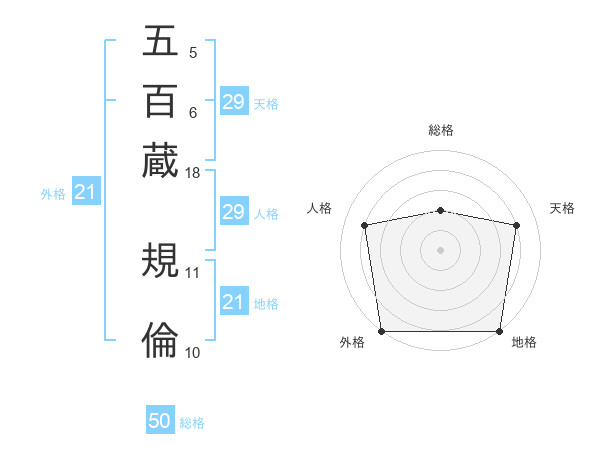 五百蔵 規倫さんを姓名の画数から五運を鑑定