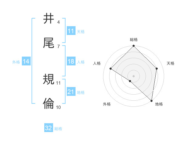 井尾 規倫さんの総格は32画の5点!