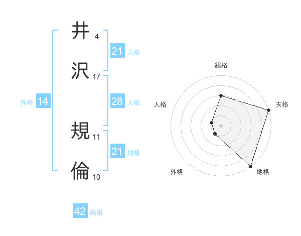 井沢 規倫さんの地格は21画の5点!