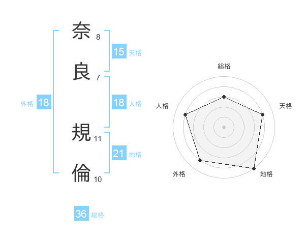 奈良 規倫さんの天格は15画の4点!