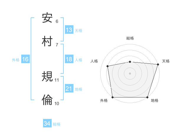 安村 規倫さんの天格は13画の5点!