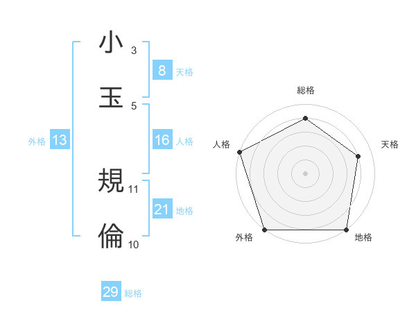 小玉 規倫さんを姓名の画数から五運を鑑定