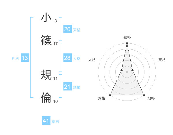 小篠 規倫さんの総格は41画の5点!