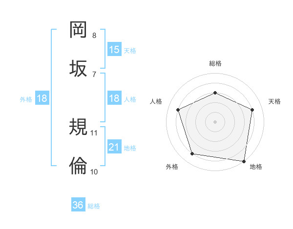 岡坂 規倫さんの総格は36画の3点!
