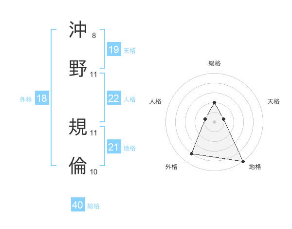 沖野 規倫さんを姓名の画数から五運を鑑定