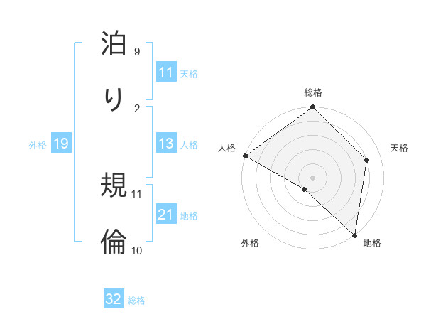 泊り 規倫さんの総格は32画の5点!