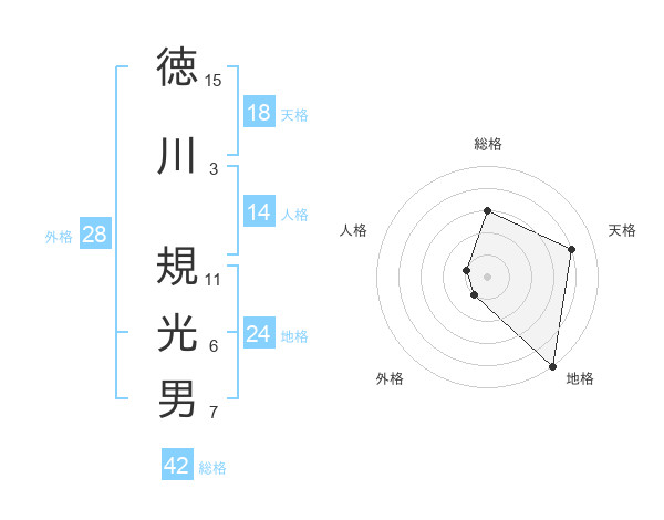 徳川 規光男さんの総格は42画の3点!