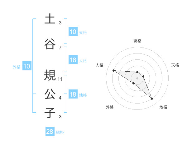土谷 規公子さんを姓名の画数から五運を鑑定