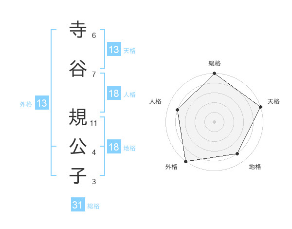寺谷 規公子さんを姓名の画数から五運を鑑定