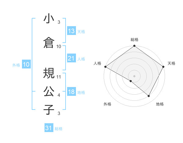小倉 規公子さんの総格は31画の5点!