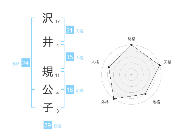 沢井 規公子さんを姓名の画数から五運を鑑定