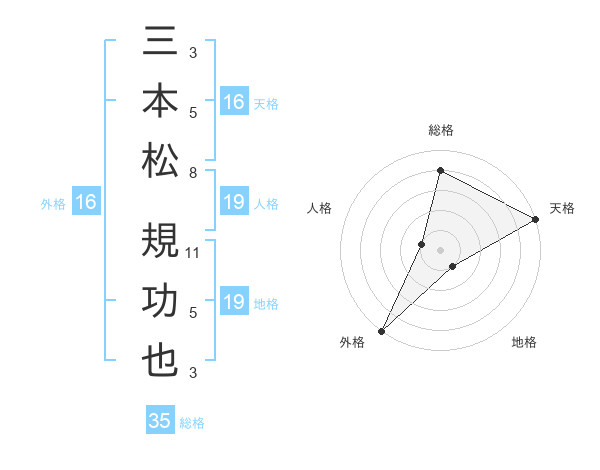 三本松 規功也さんを姓名の画数から五運を鑑定
