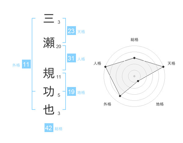 三瀬 規功也さんの天格は23画の5点!