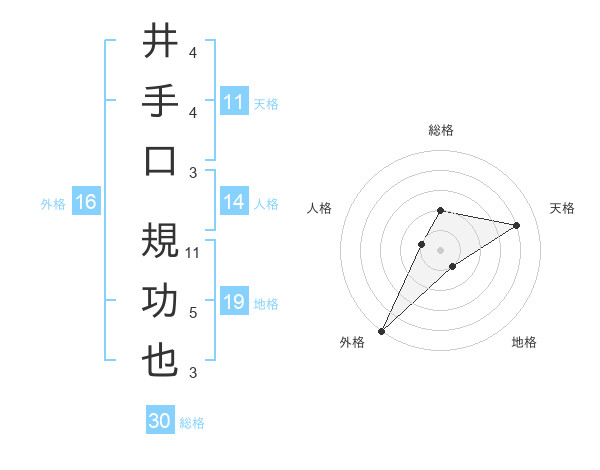 井手口 規功也さんを姓名の画数から五運を鑑定
