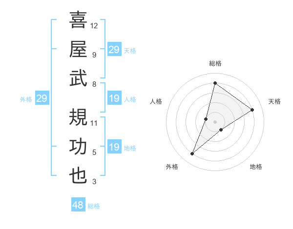 喜屋武 規功也さんの総格は48画の4点!