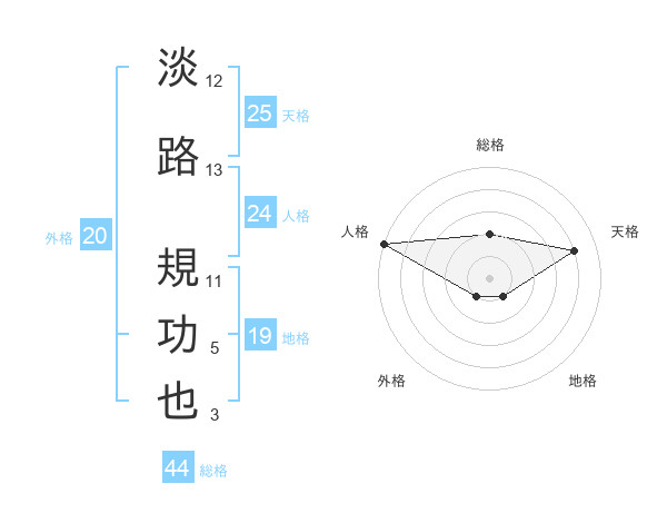淡路 規功也さんを姓名の画数から五運を鑑定