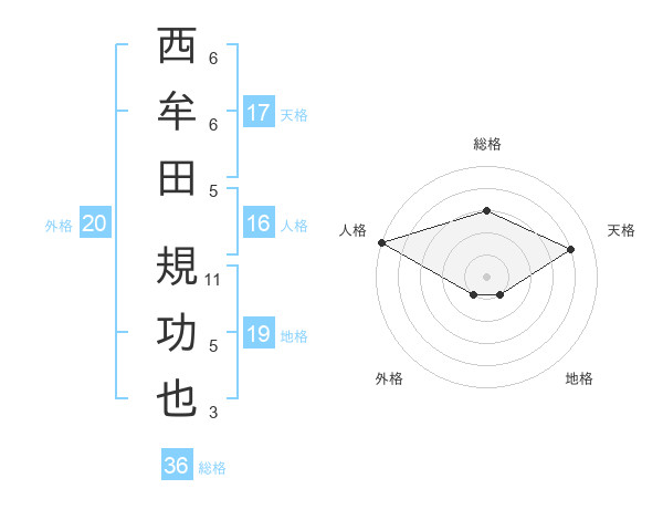 西牟田 規功也さんを姓名の画数から五運を鑑定
