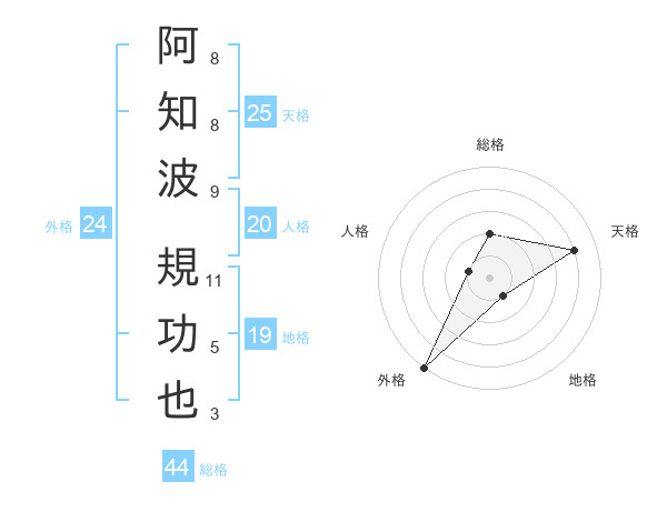 阿知波 規功也さんを姓名の画数から五運を鑑定