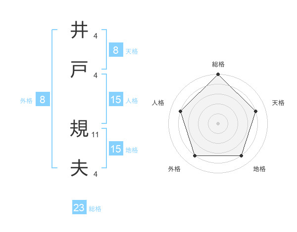 井戸 規夫さんの総格は23画の5点!