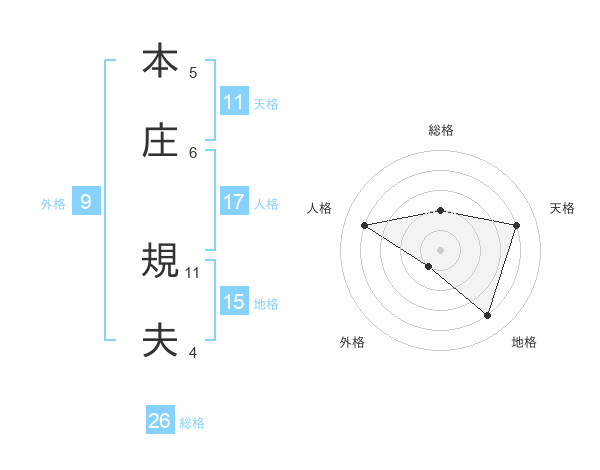 本庄 規夫さんの天格は11画の4点!