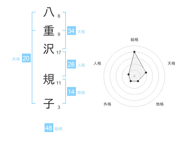 八重沢 規子さんの総格は48画の4点!