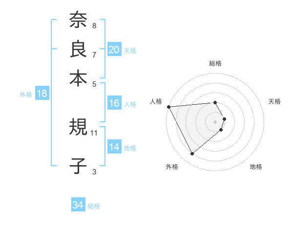 奈良本 規子さんの総格は34画の2点!
