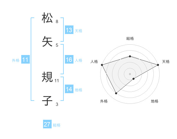 松矢 規子さんの天格は13画の5点!