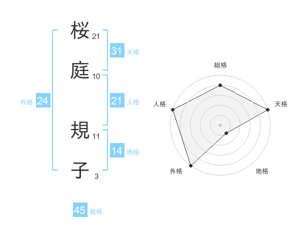 桜庭 規子さんを姓名の画数から五運を鑑定