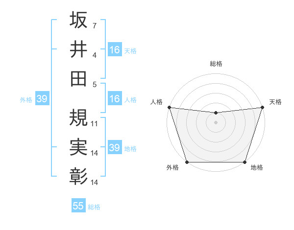 坂井田 規実彰さんの外格は39画の5点!