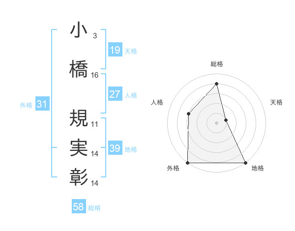 小橋 規実彰さんを姓名の画数から五運を鑑定