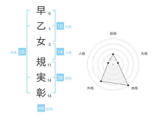 早乙女 規実彰さんの総格は49画の2点!