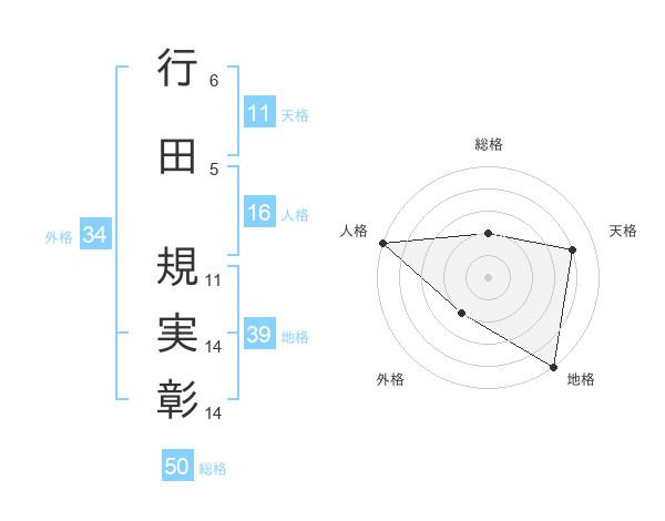 行田 規実彰さんを姓名の画数から五運を鑑定